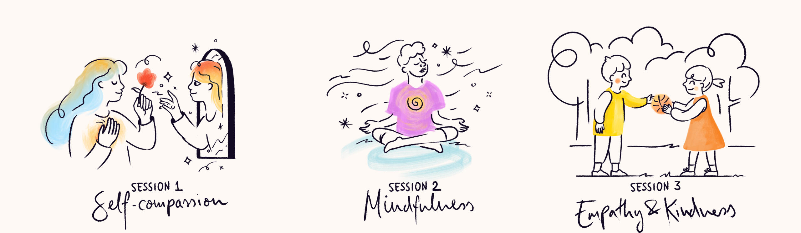 Foundational Sessions: Introduce self-kindness, mindfulness, and common humanity, helping children build a strong foundation for self-compassion through interactive activities.