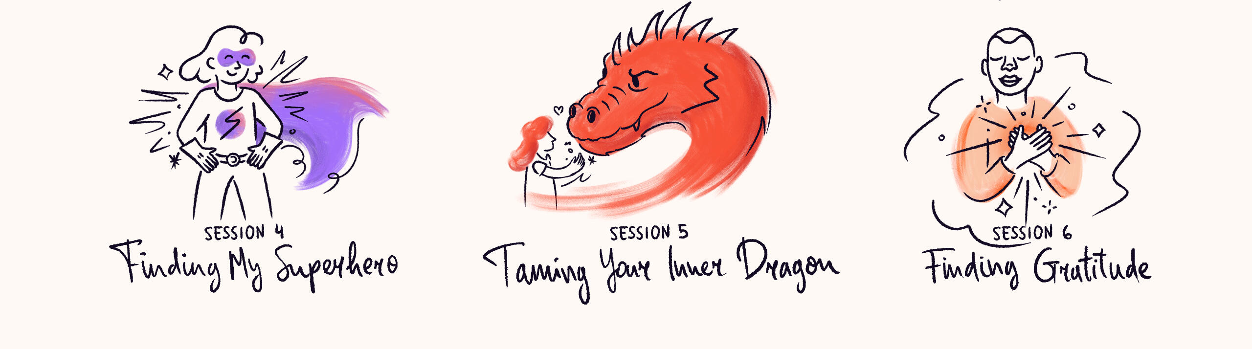 Deep Dive Sessions: Focus on navigating difficult emotions and overcoming self-criticism, equipping kids with compassionate strategies for emotional challenges. The Culminating Session teaches gratitude and appreciation, instilling lasting joy and contentment through self-compassion.